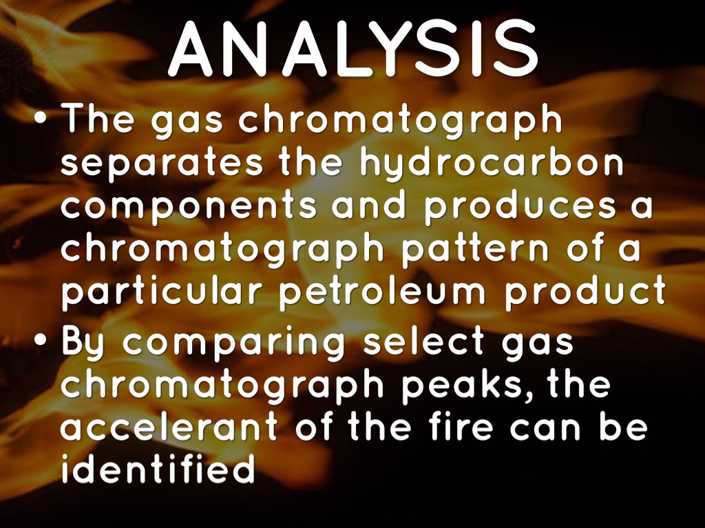By comparing select gas chromatograph peaks, the accelerant of the fire can be identified