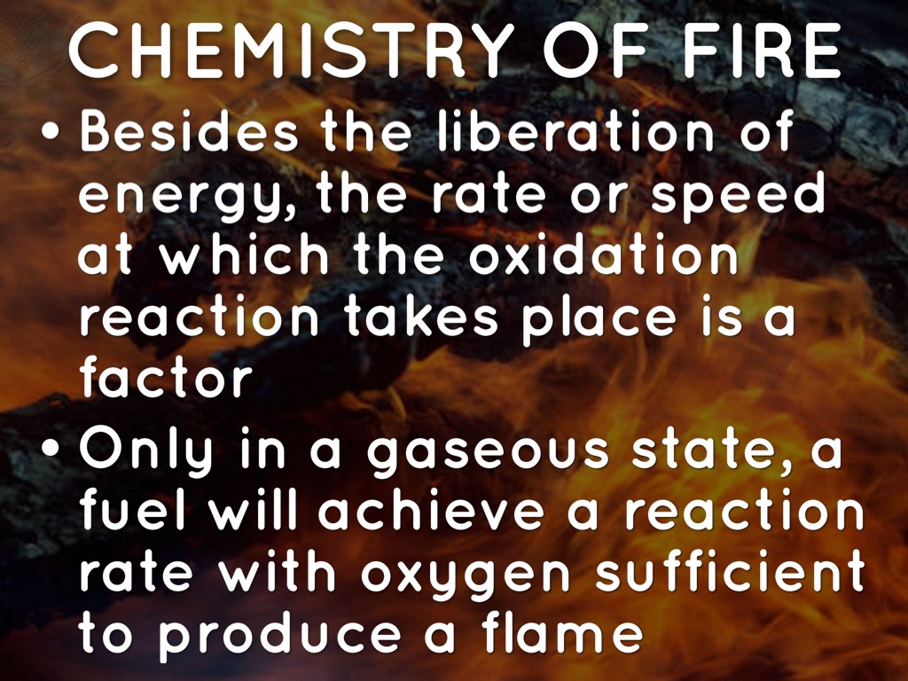Besides the liberation of energy, the rate or speed at which the oxidation reaction takes place is a factor
