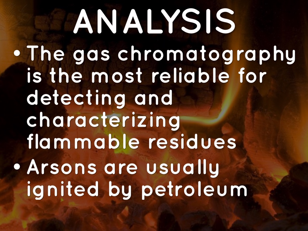 The gas chromatography is the most reliable for detecting and characterizing flammable residues