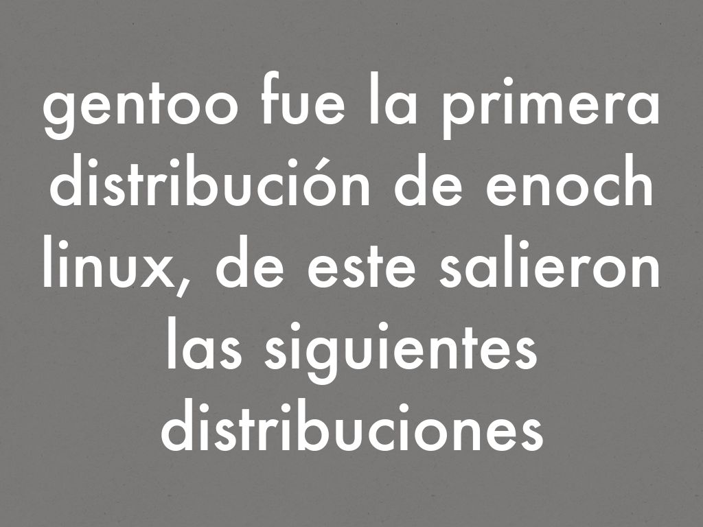 gentoo fue la primera distribución de enoch linux, de este salieron las siguientes distribuciones