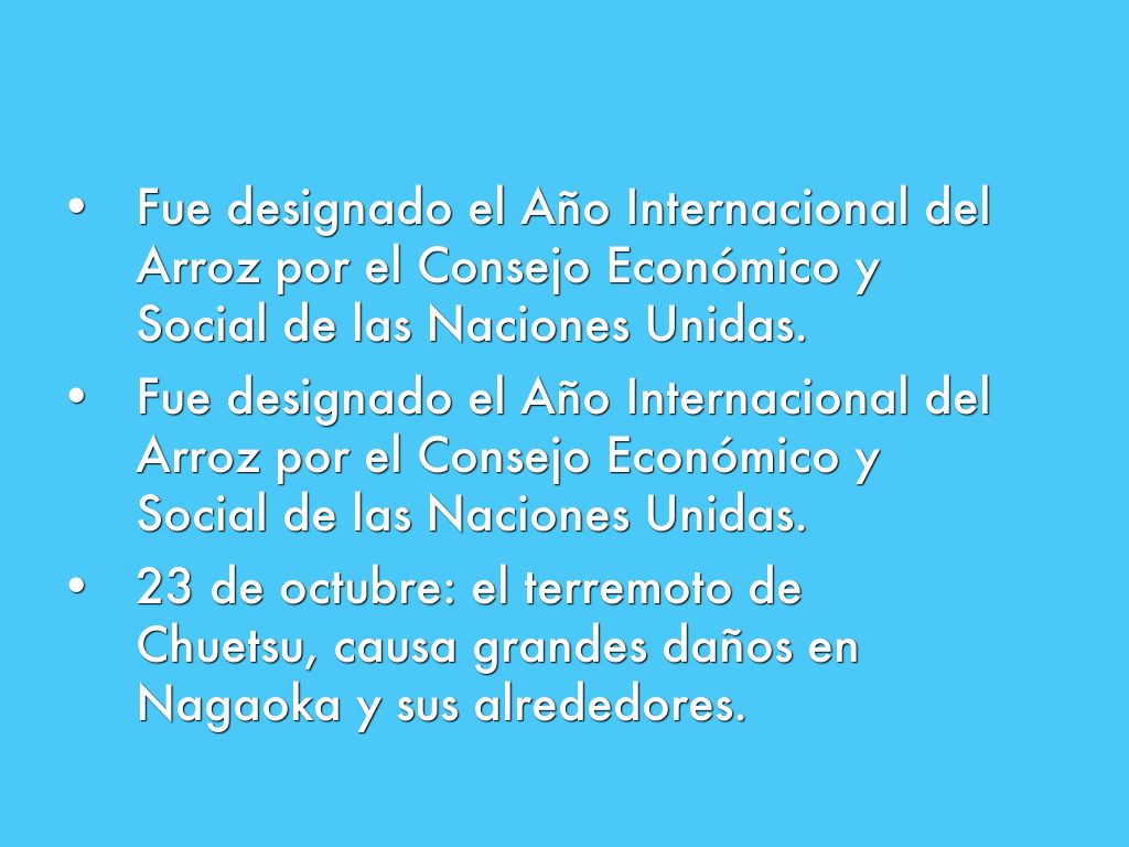 • Fue designado el Año Internacional del Arroz por el Consejo Económico y Social de las Naciones Unidas.