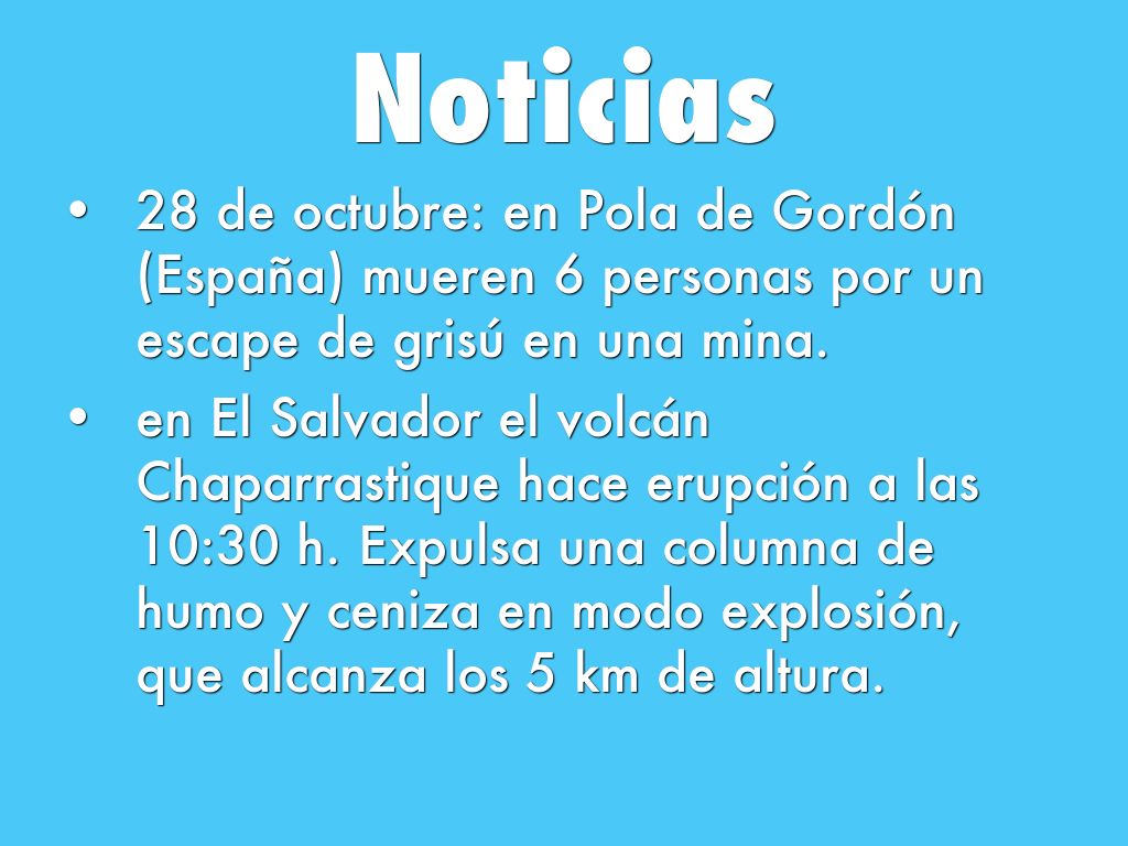 • 28 de octubre: en Pola de Gordón (España) mueren 6 personas por un escape de grisú en una mina.