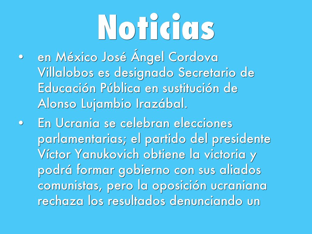 • en México José Ángel Cordova Villalobos es designado Secretario de Educación Pública en sustitución de Alonso Lujambio Irazábal.