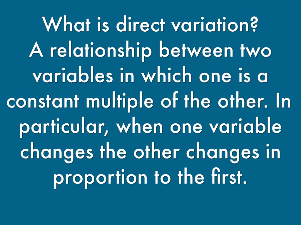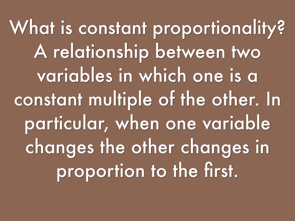 A relationship between two variables in which one is a constant multiple of the other. In particular, when one variable changes the other changes in proportion to the first.