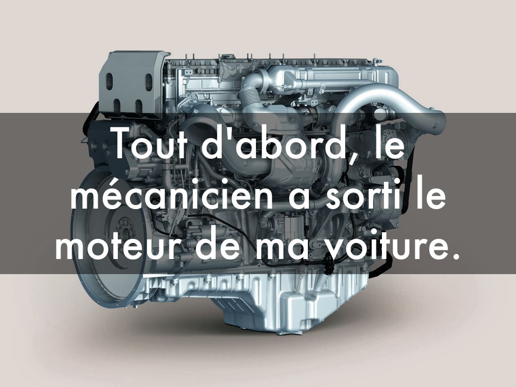 Tout d'abord, le mécanicien a sorti le moteur de ma voiture.