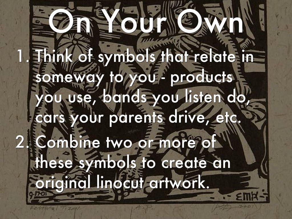 • Think of symbols that relate in someway to you - products you use, bands you listen do, cars your parents drive, etc.