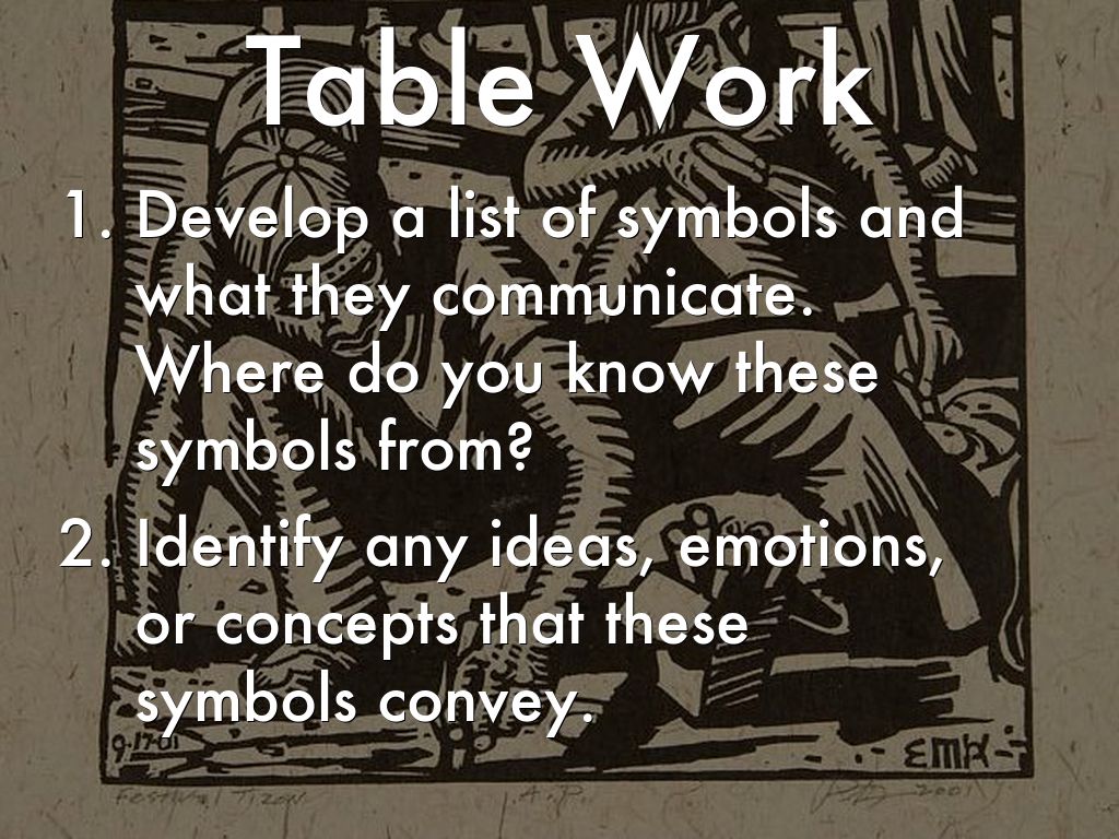 • Identify any ideas, emotions, or concepts that these symbols convey.