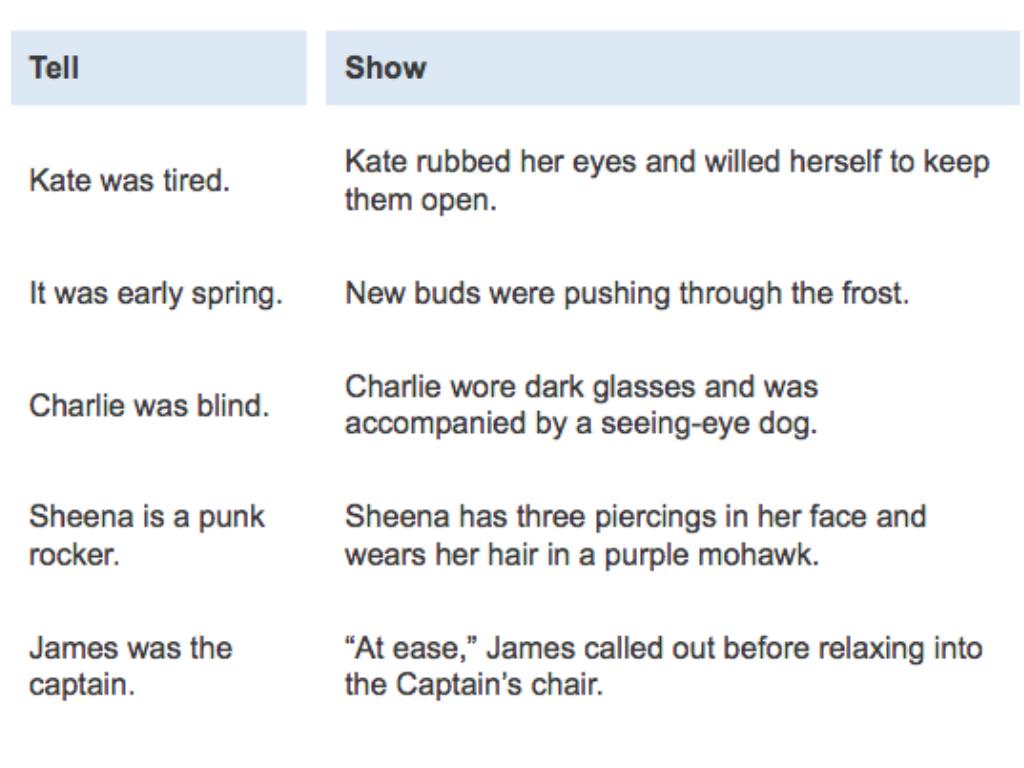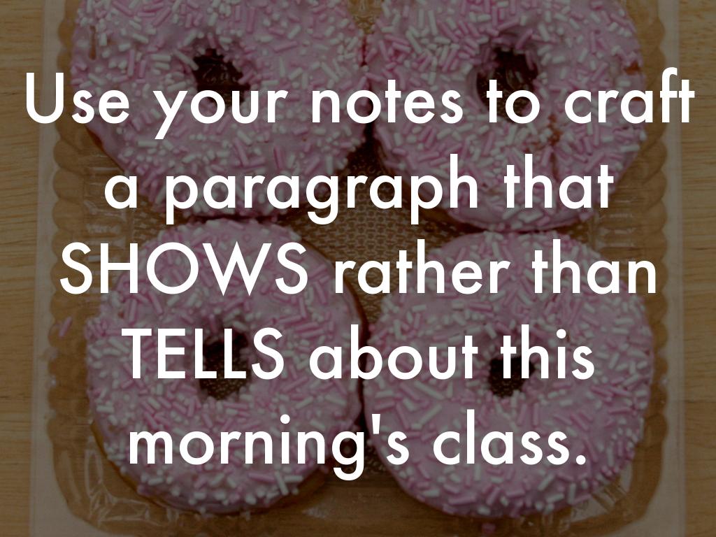 Use your notes to craft a paragraph that SHOWS rather than TELLS about this morning's class.