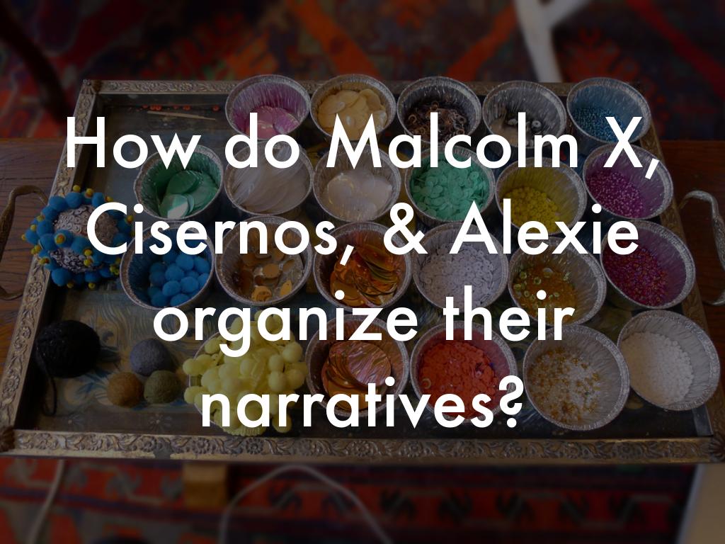 How do Malcolm X, Cisernos, & Alexie organize their narratives?