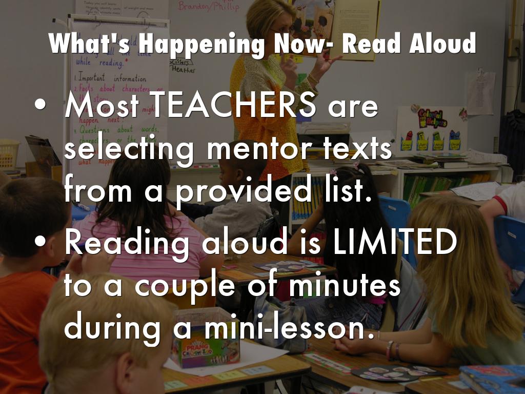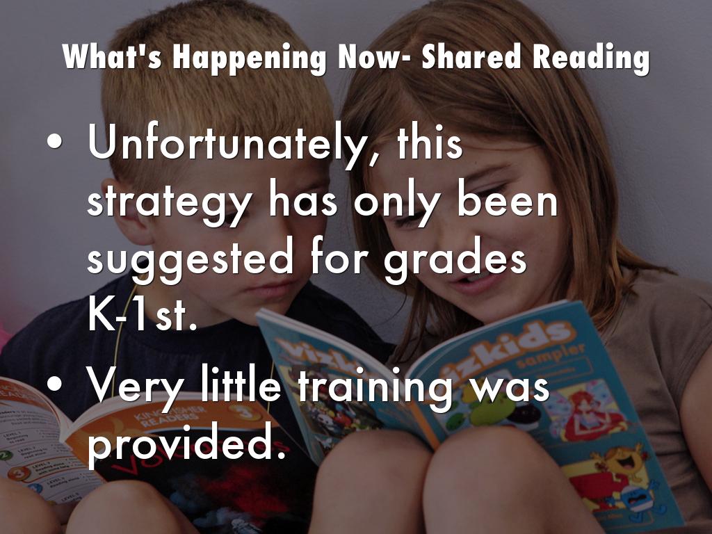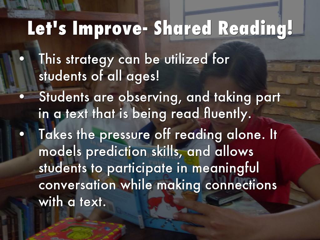 Takes the pressure off reading alone. It models prediction skills, and allows students to participate in meaningful conversation while making connections with a text.