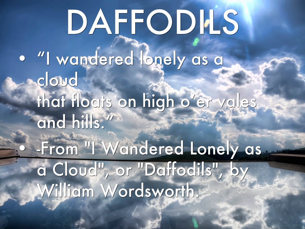 “I wandered lonely as a cloud that floats on high o’er vales and hills.”