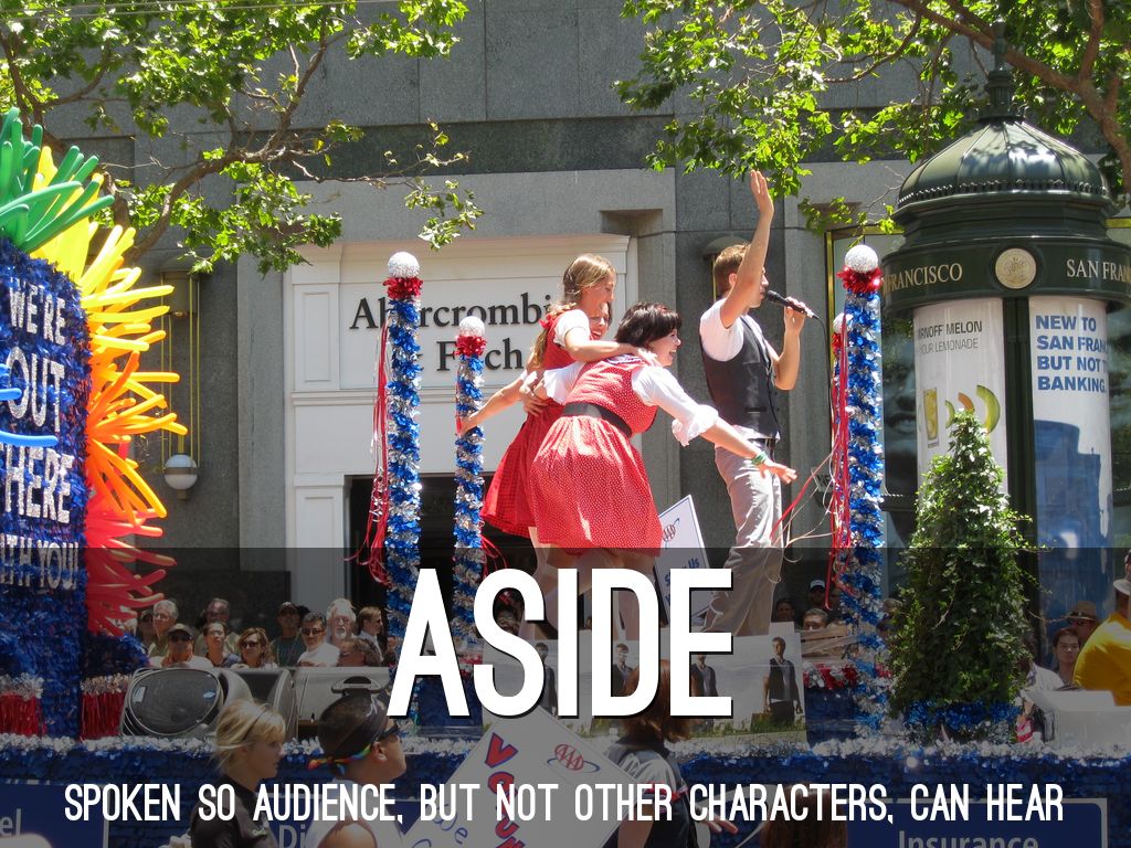 SPOKEN SO AUDIENCE, BUT NOT OTHER CHARACTERS, CAN HEAR