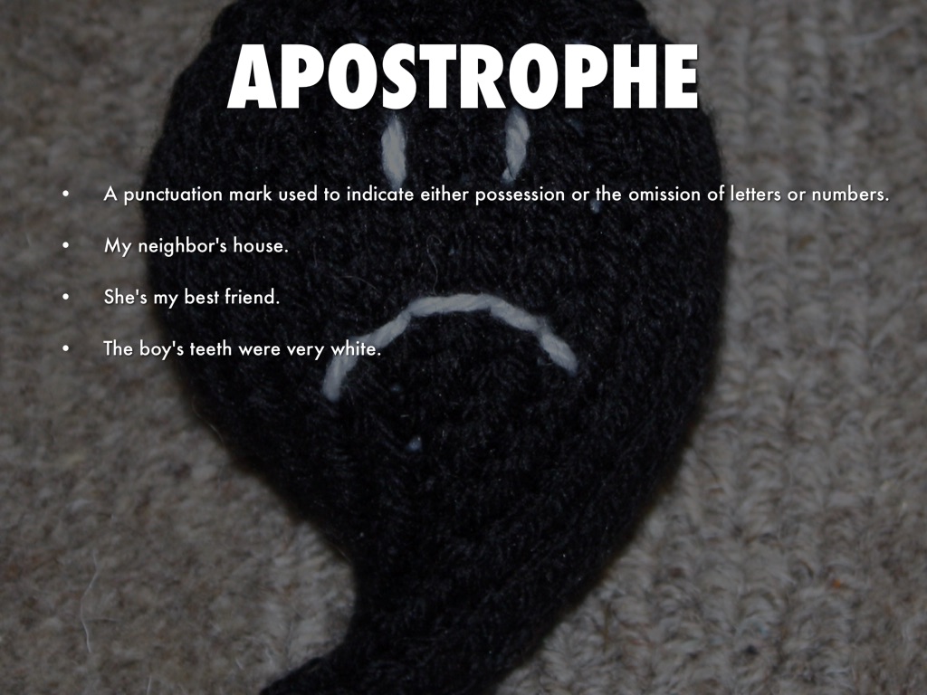 • A punctuation mark used to indicate either possession or the omission of letters or numbers.