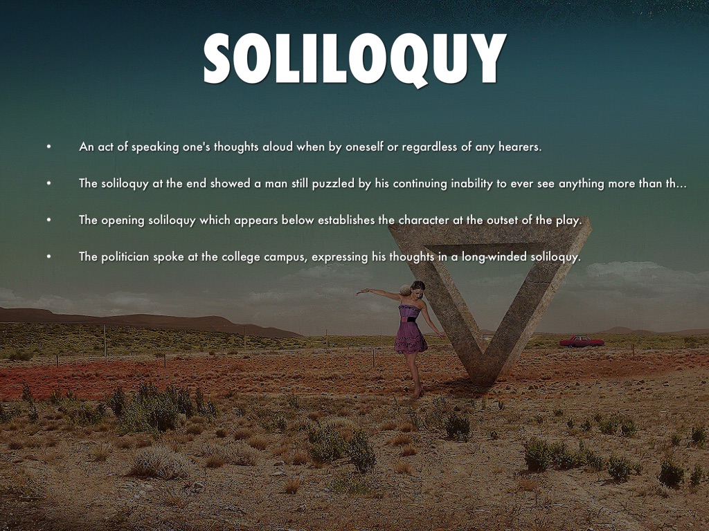 • The opening soliloquy which appears below establishes the character at the outset of the play.