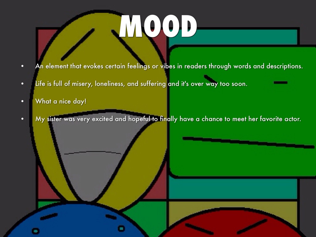 • An element that evokes certain feelings or vibes in readers through words and descriptions.