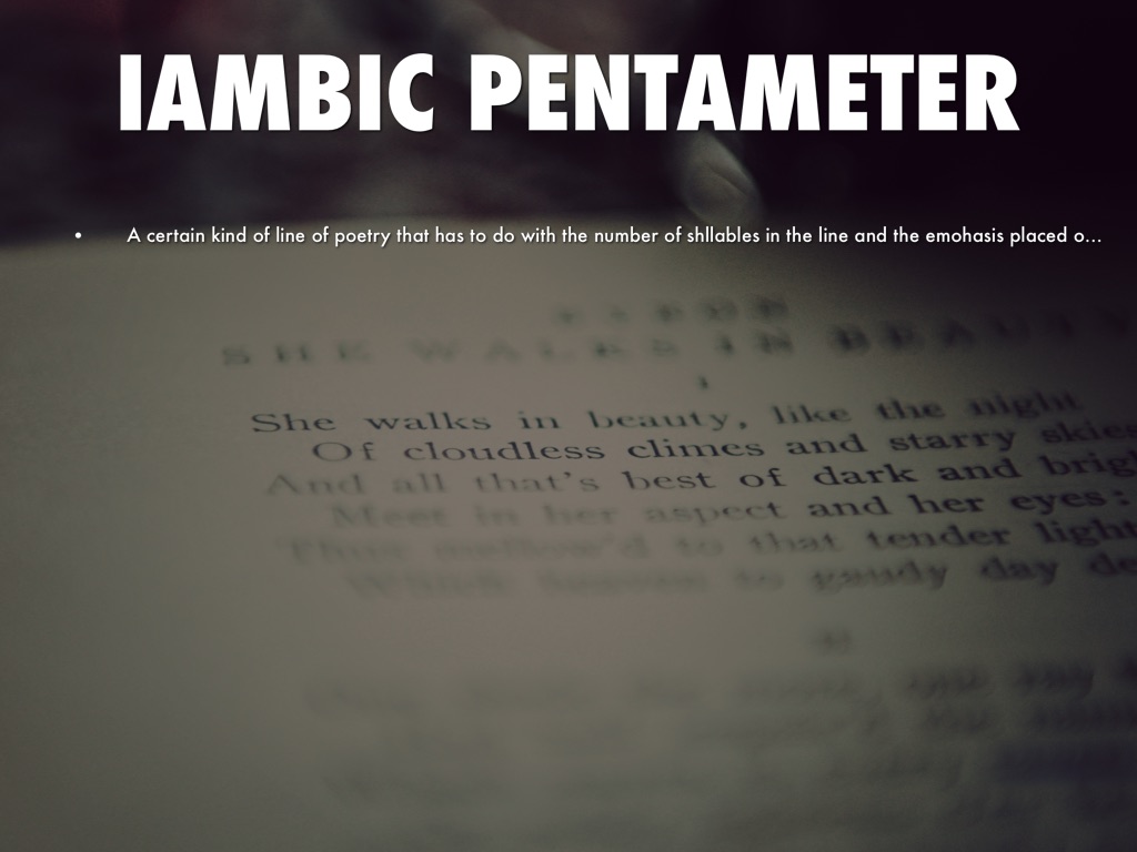 • A certain kind of line of poetry that has to do with the number of shllables in the line and the emohasis placed on thise syllables.