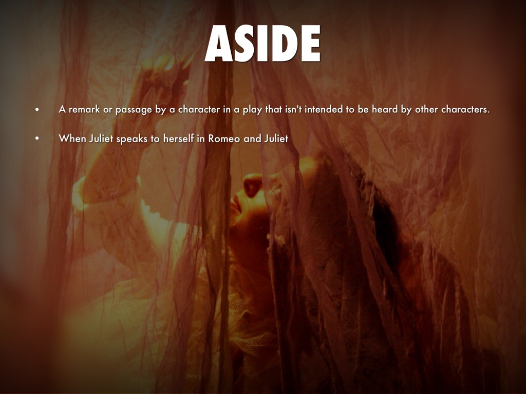 • A remark or passage by a character in a play that isn't intended to be heard by other characters.