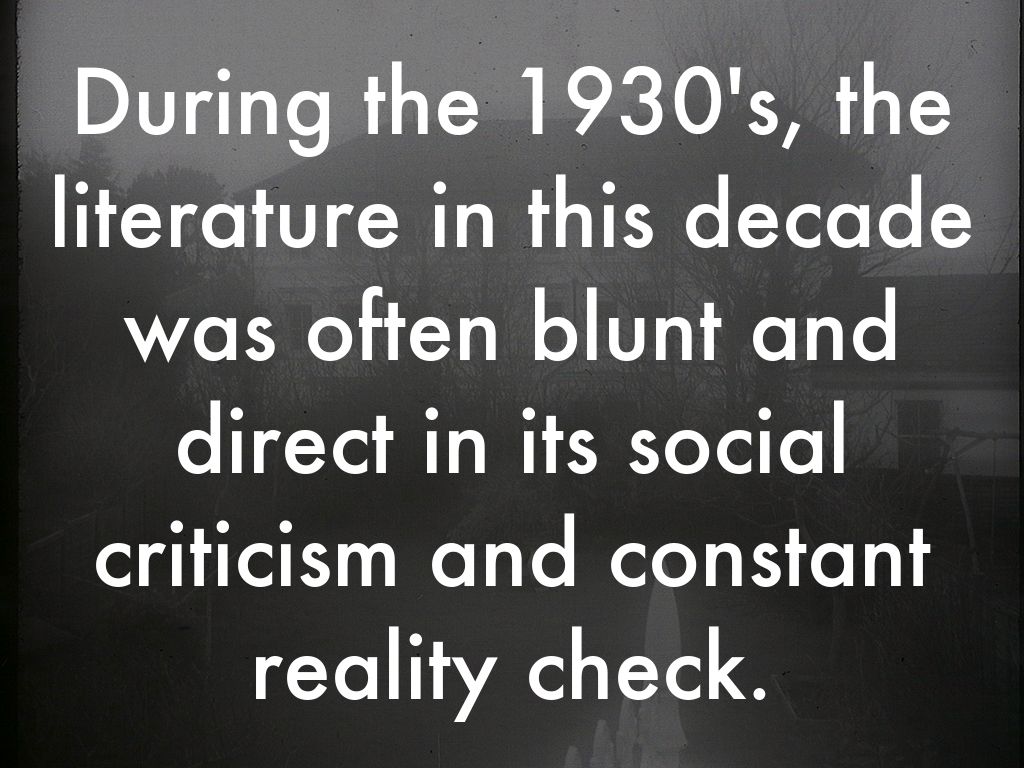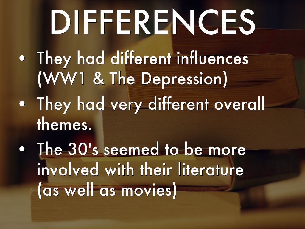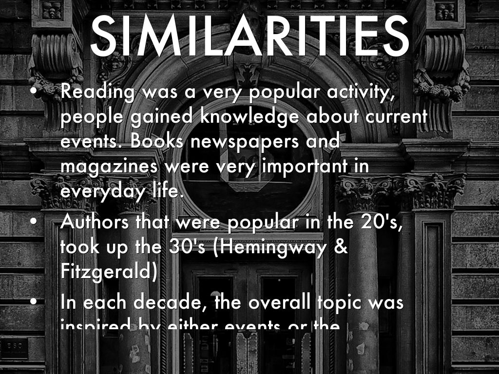 Authors that were popular in the 20's, took up the 30's (Hemingway & Fitzgerald)