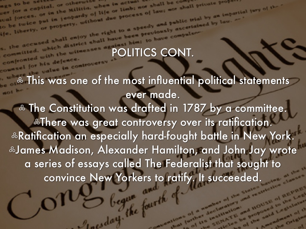༜James Madison, Alexander Hamilton, and John Jay wrote a series of essays called The Federalist that sought to convince New Yorkers to ratify. It succeeded.