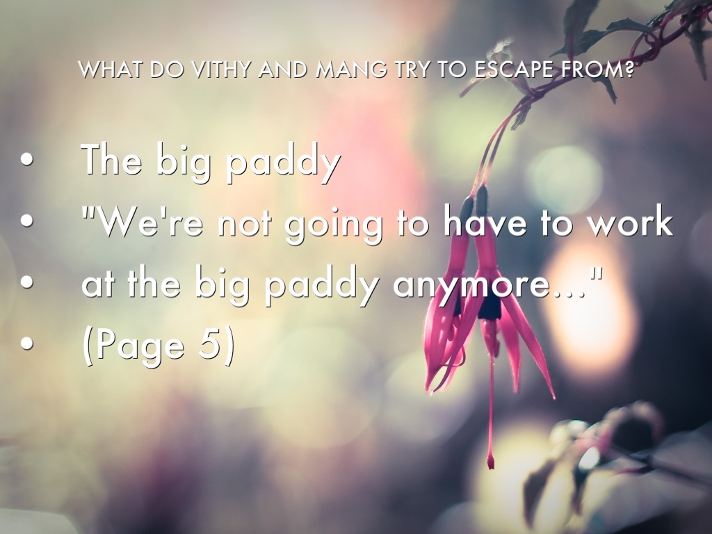 WHAT DO VITHY AND MANG TRY TO ESCAPE FROM?
