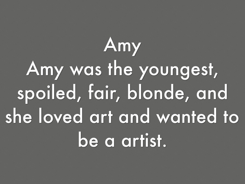 Amy was the youngest, spoiled, fair, blonde, and she loved art and wanted to be a artist.