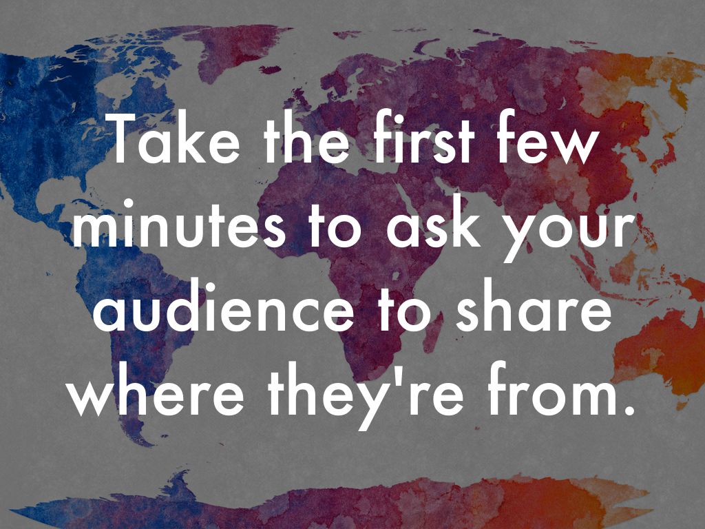 Take the first few minutes to ask your audience to share where they're from.