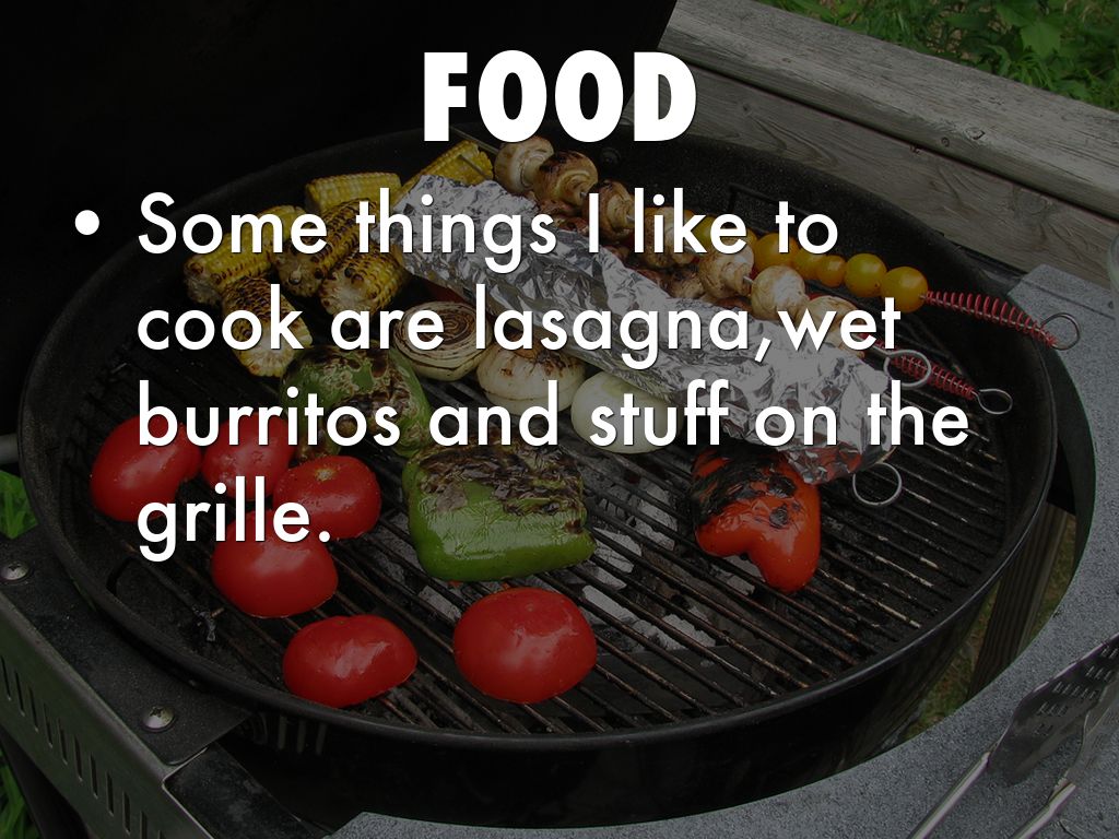 • Some things I like to cook are lasagna,wet burritos and stuff on the grille.