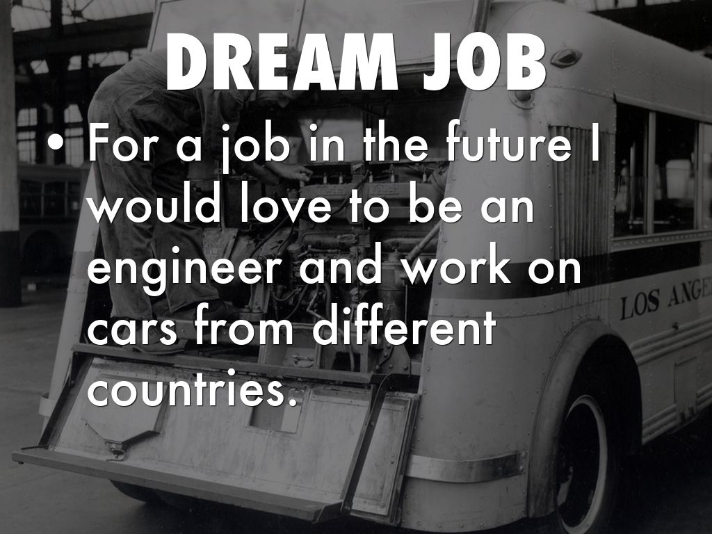 • For a job in the future I would love to be an engineer and work on cars from different countries.