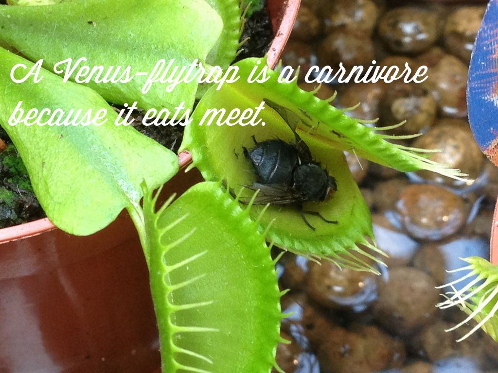 A Venus-flytrap is a consumer and a producer because it finds its own food and makes own food too.