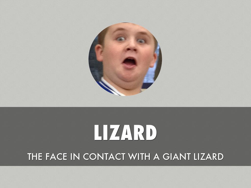 THIS IS HIS FACE IN CONTACT WITH A GIANT LIZARD