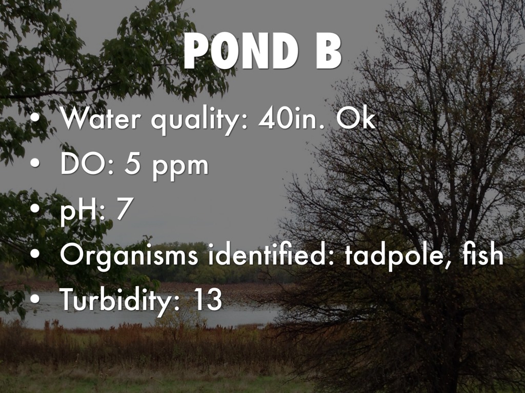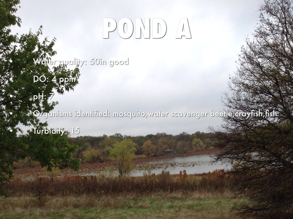 Organisms identified: mosquito,water scavenger beetle,crayfish,fish