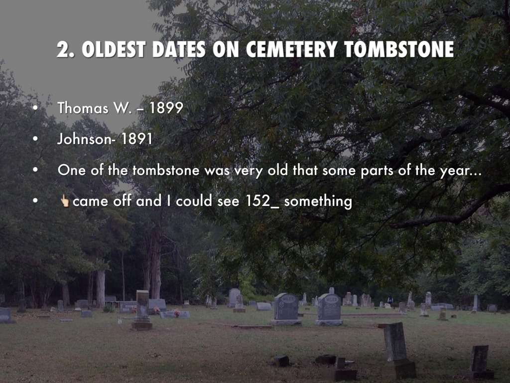 2. OLDEST DATES ON CEMETERY TOMBSTONE