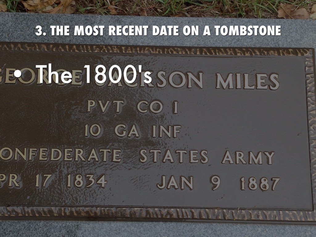 3. THE MOST RECENT DATE ON A TOMBSTONE