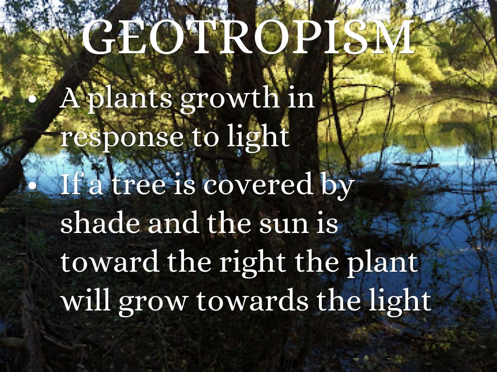 If a tree is covered by shade and the sun is toward the right the plant will grow towards the light