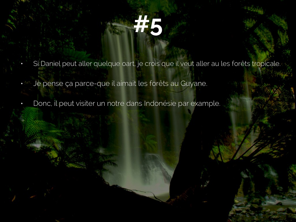 Si Daniel peut aller quelque oart, je crois que il veut aller au les forêts tropicale.