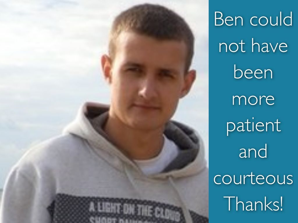 Ben could not have been more patient and courteousThanks!