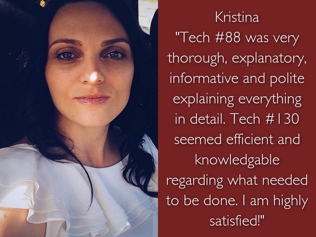 "Tech #88 was very thorough, explanatory, informative and polite explaining everything in detail. Tech #130 seemed efficient and knowledgable regarding what needed to be done. I am highly satisfied!"
