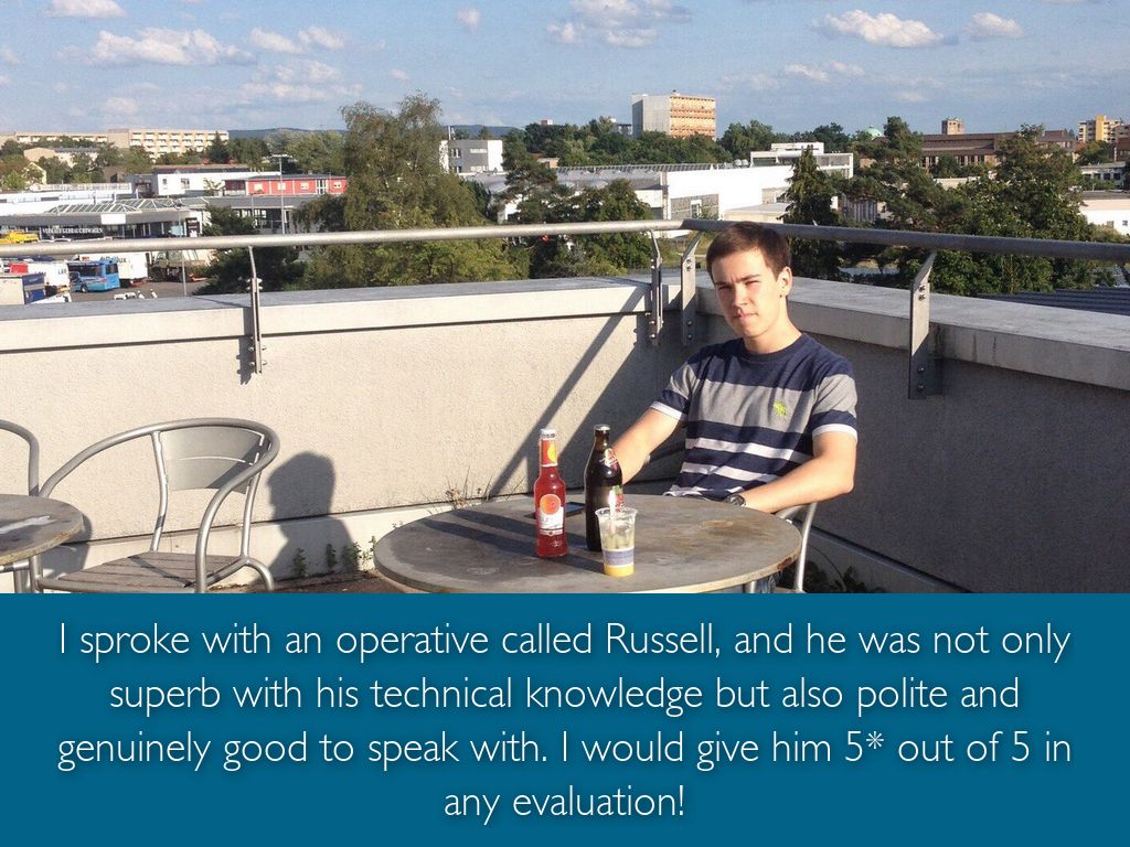 I sproke with an operative called Russell, and he was not only superb with his technical knowledge but also polite and genuinely good to speak with. I would give him 5* out of 5 in any evaluation!