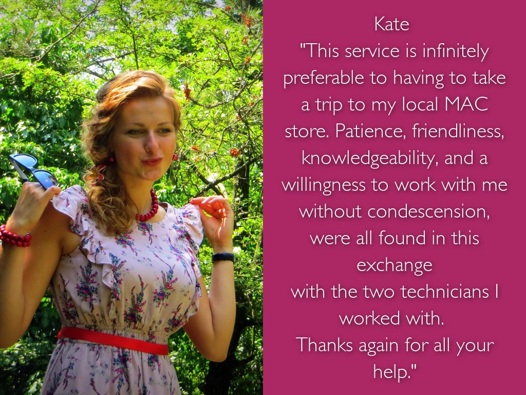 "This service is infinitely preferable to having to take a trip to my local MAC store. Patience, friendliness, knowledgeability, and a willingness to work with me without condescension, were all found in this exchange