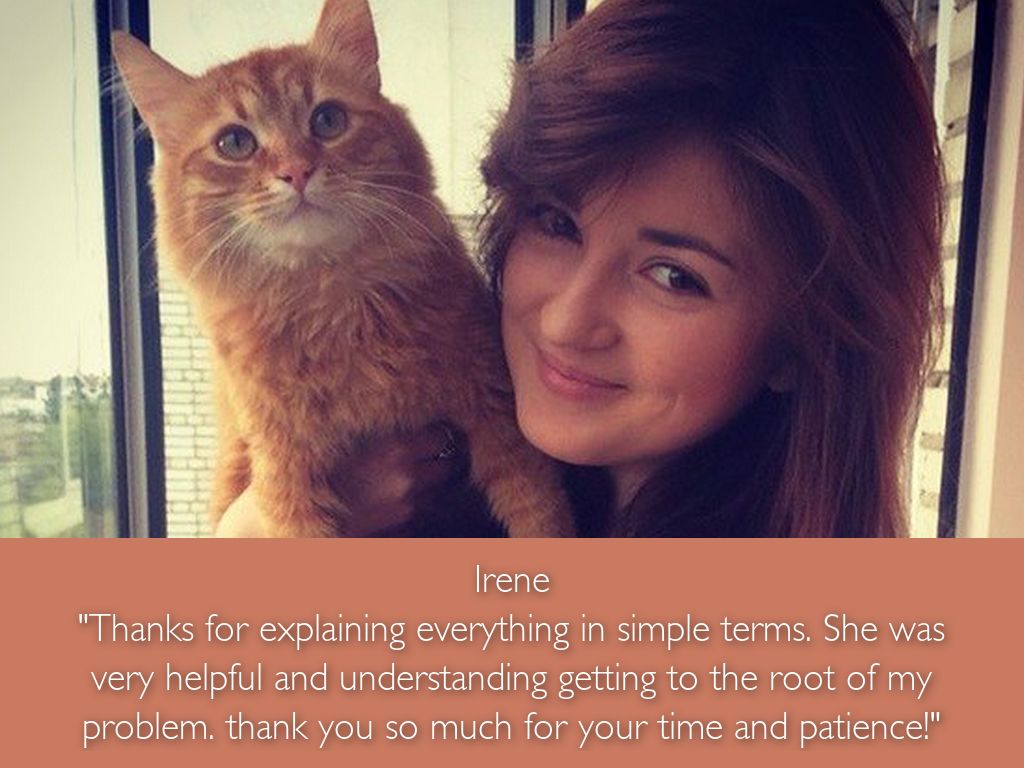 "Thanks for explaining everything in simple terms. She was very helpful and understanding getting to the root of my problem. thank you so much for your time and patience!"
