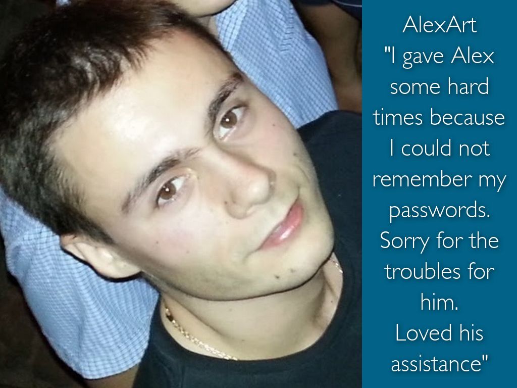 "I gave Alex some hard times because I could not remember my passwords. Sorry for the troubles for him.