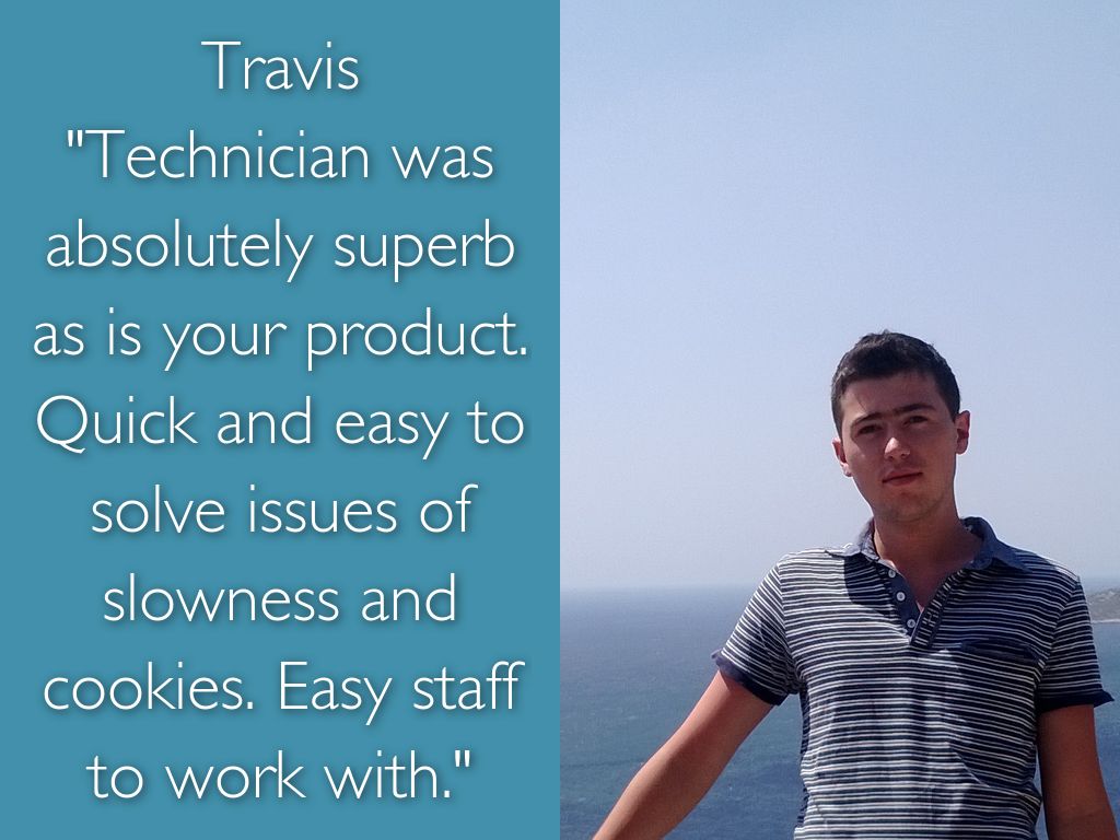 "Technician was absolutely superb as is your product. Quick and easy to solve issues of slowness and cookies. Easy staff to work with."
