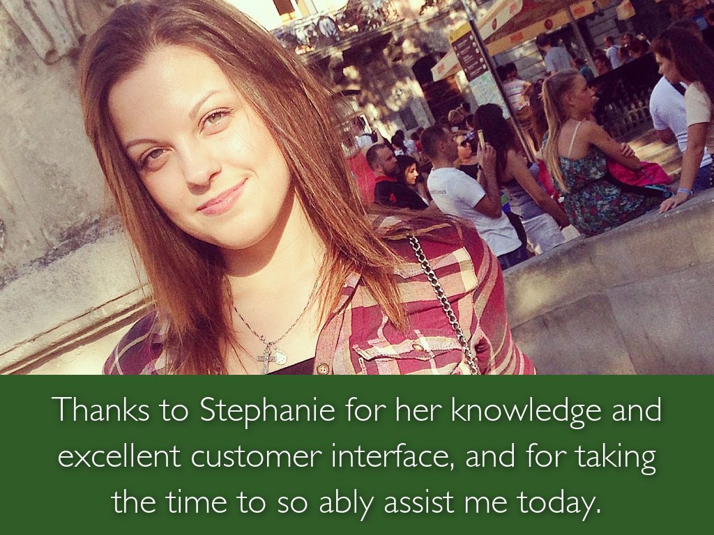 Thanks to Stephanie for her knowledge and excellent customer interface, and for taking the time to so ably assist me today.