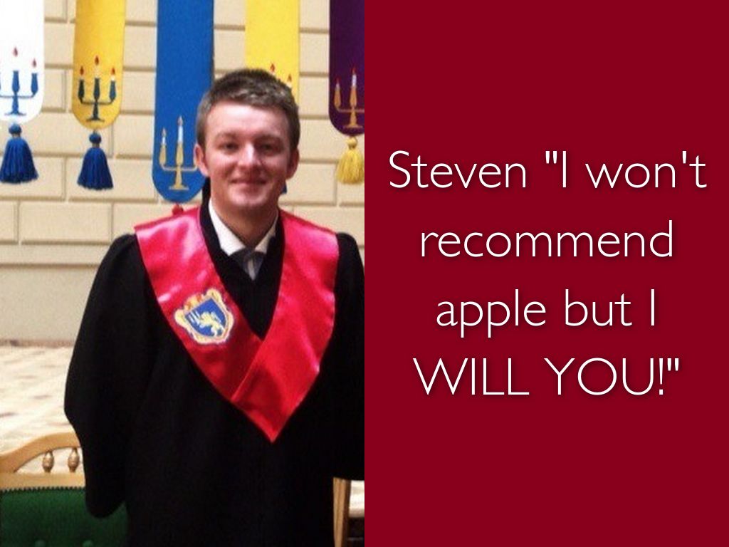 Steven "I won't recommend apple but I WILL YOU!"