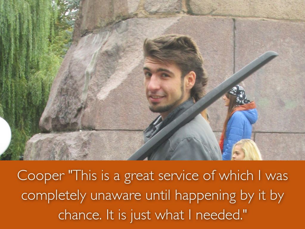 Cooper "This is a great service of which I was completely unaware until happening by it by chance. It is just what I needed."