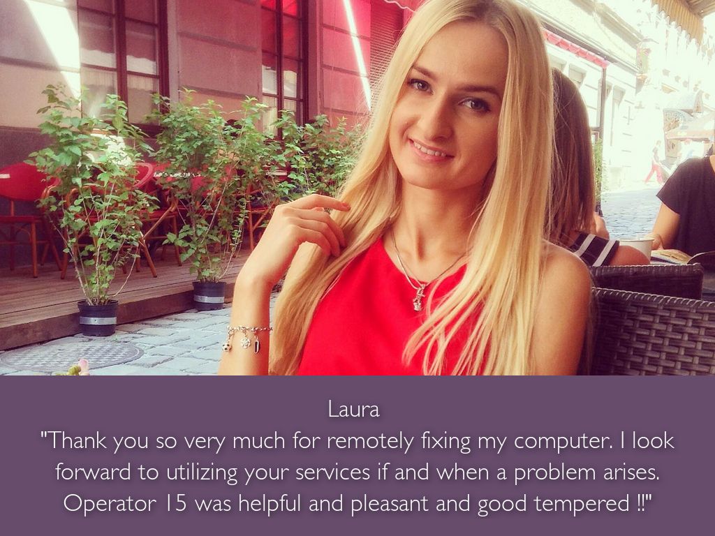 "Thank you so very much for remotely fixing my computer. I look forward to utilizing your services if and when a problem arises. Operator 15 was helpful and pleasant and good tempered !!"