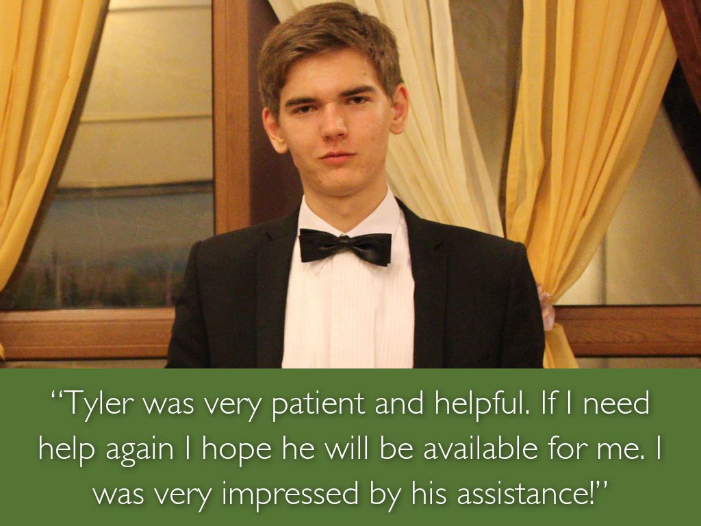 “Tyler was very patient and helpful. If I need help again I hope he will be available for me. I was very impressed by his assistance!”