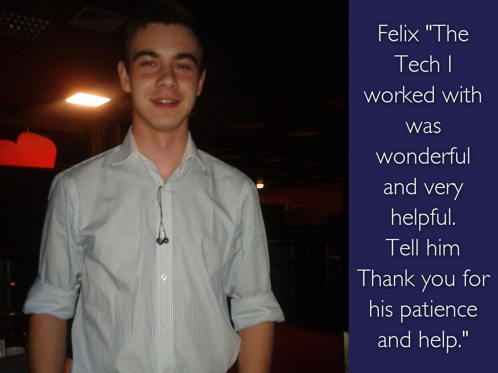 Felix "The Tech I worked with was wonderful and very helpful.