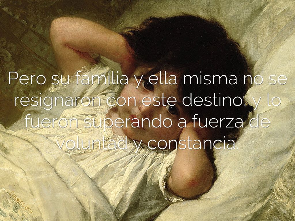 Pero su familia y ella misma no se resignaron con este destino, y lo fueron superando a fuerza de voluntad y constancia.