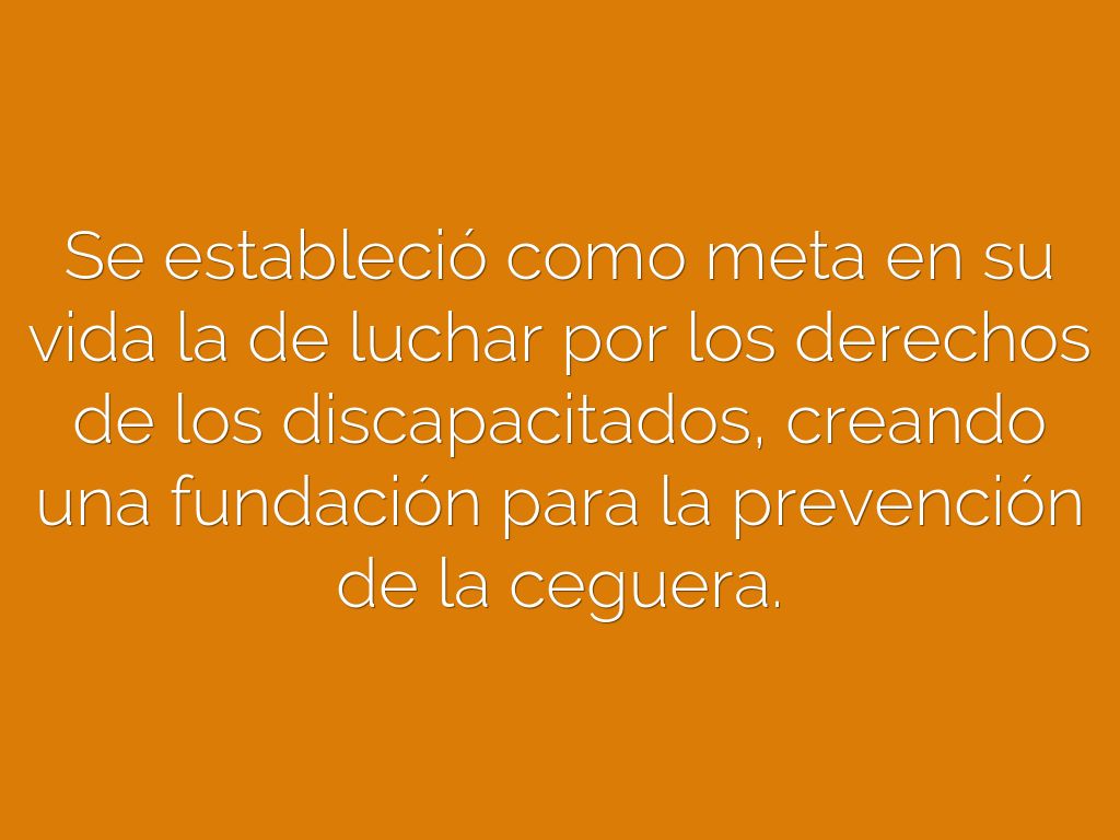 Se estableció como meta en su vida la de luchar por los derechos de los discapacitados, creando una fundación para la prevención de la ceguera.